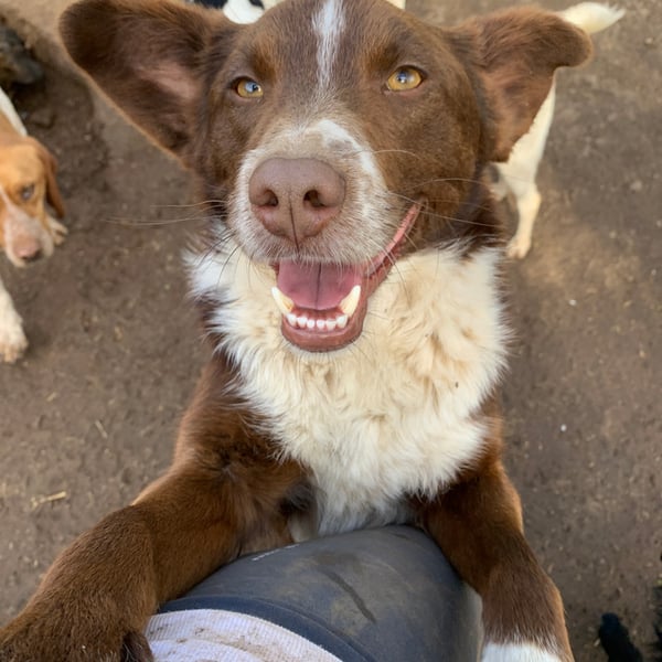 Interacts daily with 20+ dogs at once with perfect behavior.