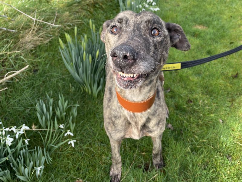 A sun-seeking lurcher who loves a high-five