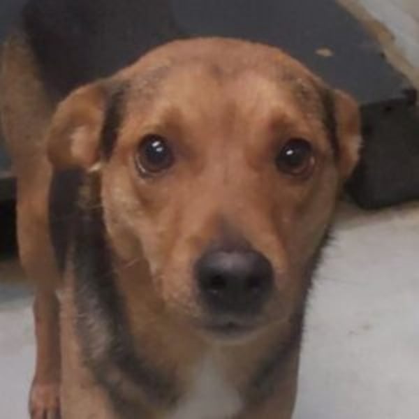A wagging tail and amber eyes looking for home