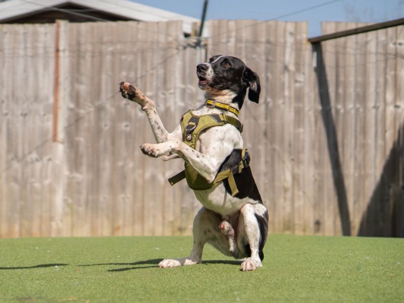 Gets very wriggly and vocal on lead when he wants to say hello to everyone.